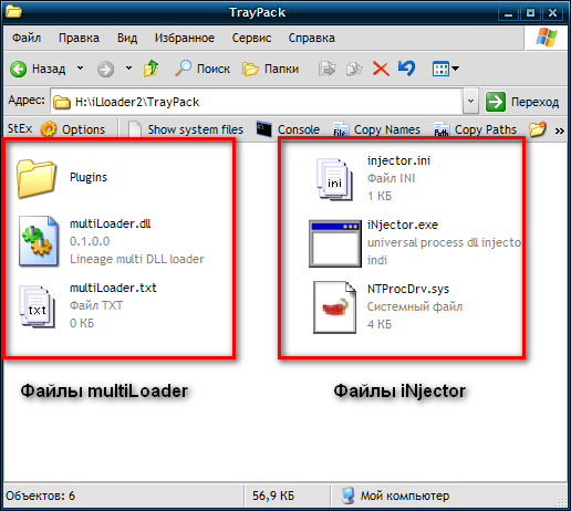Я же расскажу как это сделать через iNjector. Для начала скачаем, и распакуем iNjector и multiLoader в какую нибудь папку.